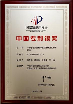 近日,優(yōu)美特收到國家知識(shí)產(chǎn)權(quán)局頒發(fā)的“中國專利銀獎(jiǎng)”證書。公司所擁有的發(fā)明專利“一種水性聚氨酯彈性分散體及其制備方法”,被國家知識(shí)產(chǎn)權(quán)局評為“第二十一屆中國專利銀獎(jiǎng)”。