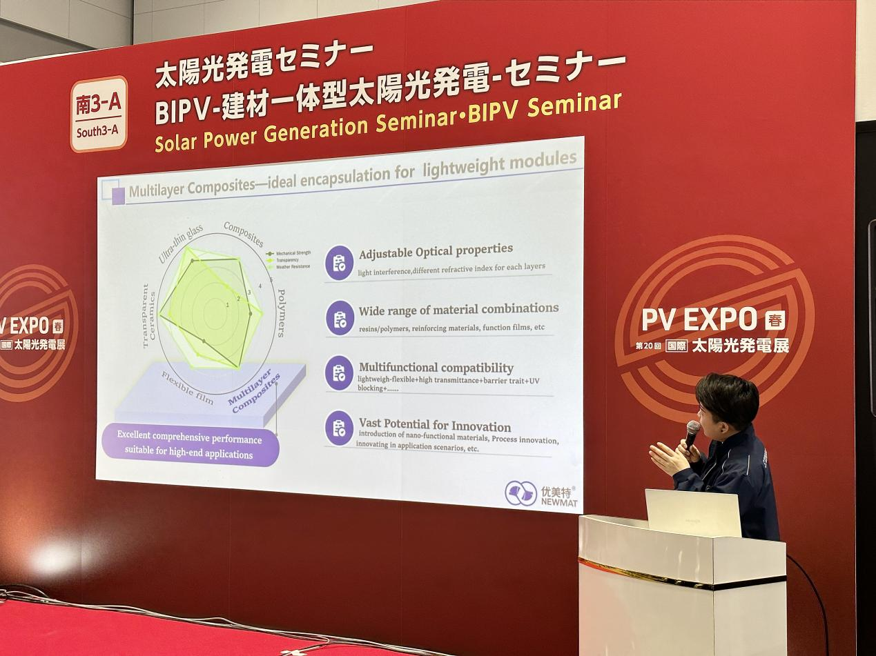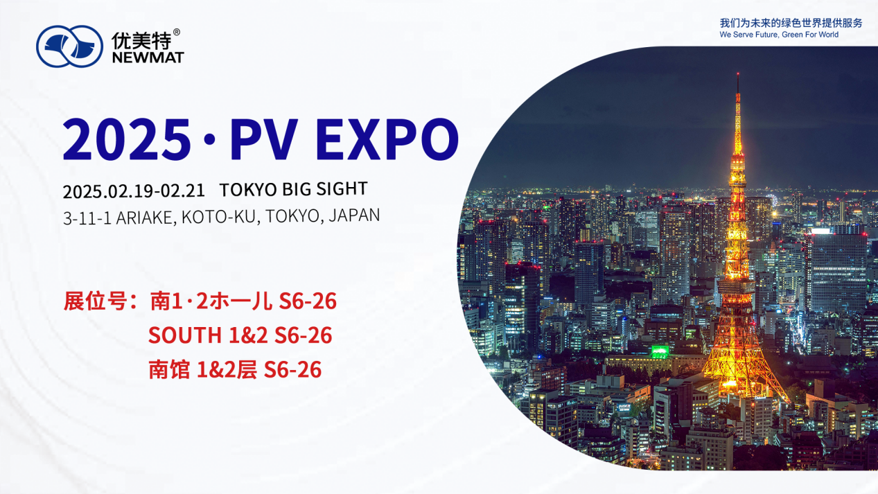 2025年2月19日至21日,優(yōu)美特攜創(chuàng)新型彩色高透輕質(zhì)前板和解決方案完美亮相2025日本東京國際智能能源周(World Smart Energy Week Tokyo)日本東京太陽能光伏展(PV EXPO)是亞洲地區(qū)規(guī)模最大、專業(yè)性最強的太陽能光伏展之一。是名副其實的太陽能行業(yè)盛會。
