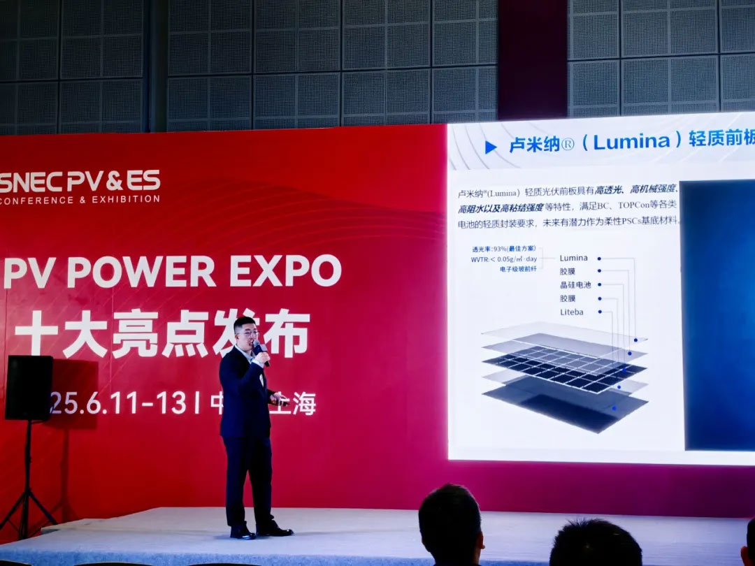 光伏業(yè)務(wù)總監(jiān)張瀟圍繞柔性光伏封裝的關(guān)鍵挑戰(zhàn),詳細(xì)介紹了盧米納®輕質(zhì)高透封裝前板的結(jié)構(gòu)優(yōu)勢(shì)。該產(chǎn)品在保證柔性彎折特性的同時(shí),具備優(yōu)異的抗黃變能力,為柔性組件提供穩(wěn)定可靠的封裝解決方案,助力輕量化光伏場(chǎng)景落地應(yīng)用。